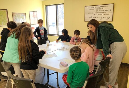 Our elementary classrooms are broken up into two age groups (K-1st grade and 2nd -5th grades) in order to tailor activities and lesson time specifically to each age group. Each classroom is staffed with a teacher and an assistant ready to love and serve your child. Our elementary kids join together for combined worship and outdoor play, if weather permits.